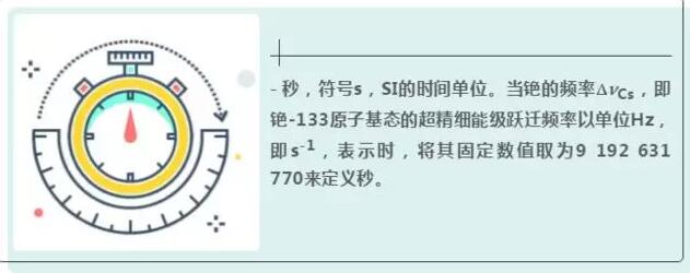- 秒,符號s,SI的時間單位。當(dāng)銫的頻率DnCs,即銫-133原子基態(tài)的超精細(xì)能級躍遷頻率以單位Hz,即s-1,表示時,將其固定數(shù)值取為9 192 631 770來定義秒。